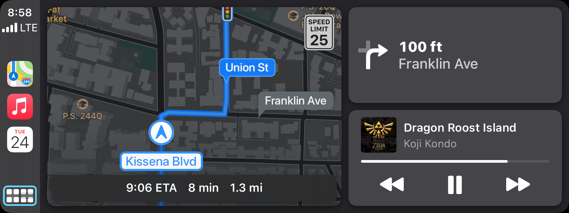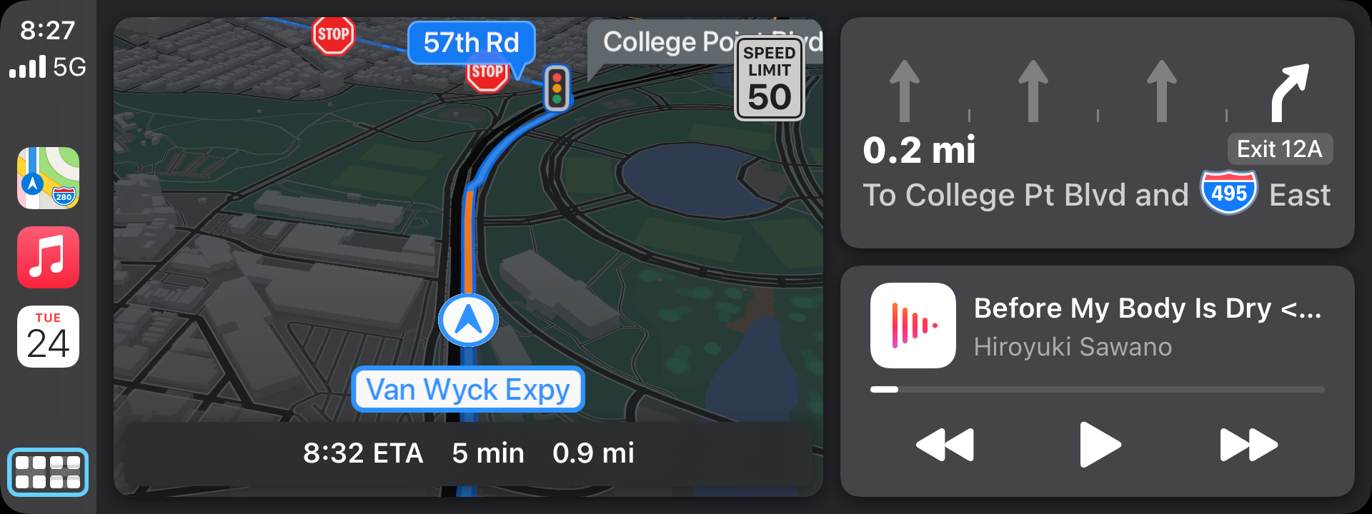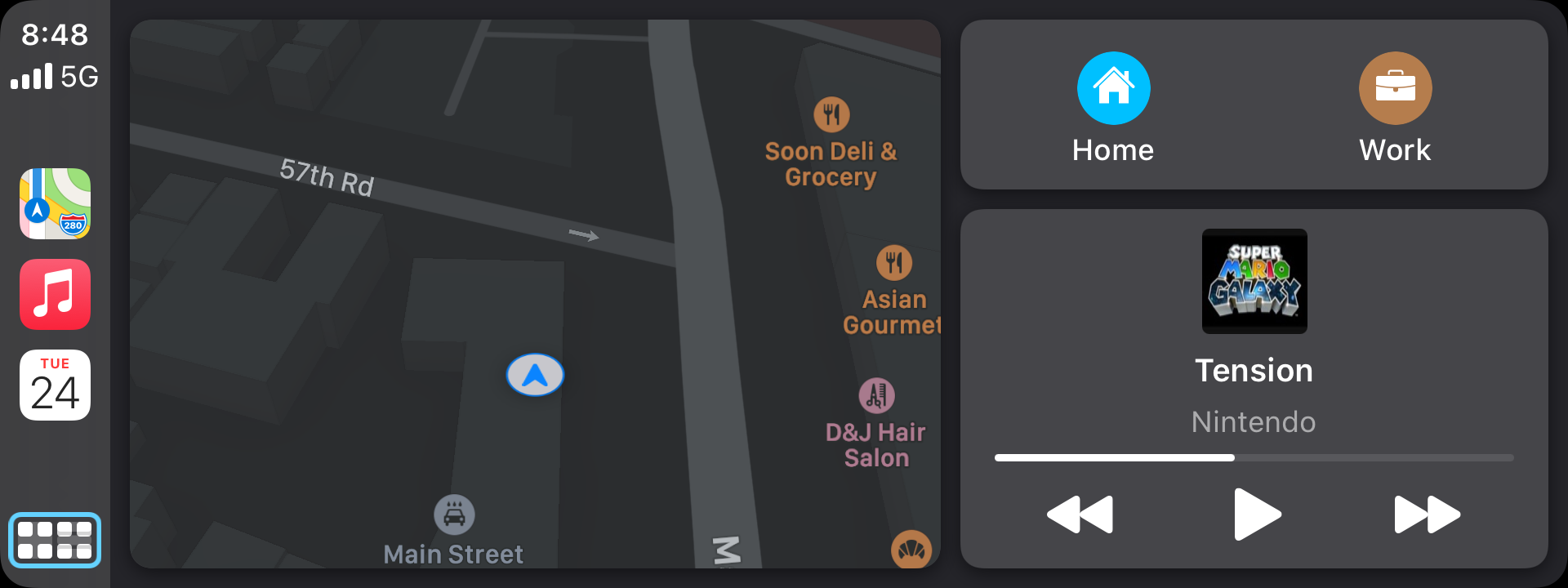 Experimented with using the dashboard view for a drive to the car wash tonight. It’s pretty nifty, but not really a substitute for experiencing Apple Maps on the biggest screen possible.