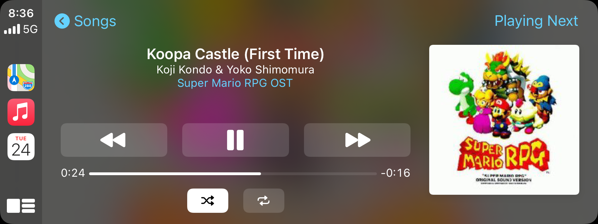 Is there no way to have the title/artwork show up in e.g. your instrument cluster while using maps on the infotainment screen?Is there a way to make "banners" appear on the CarPlay screen when the music you're listening to within CarPlay changes to a different track?