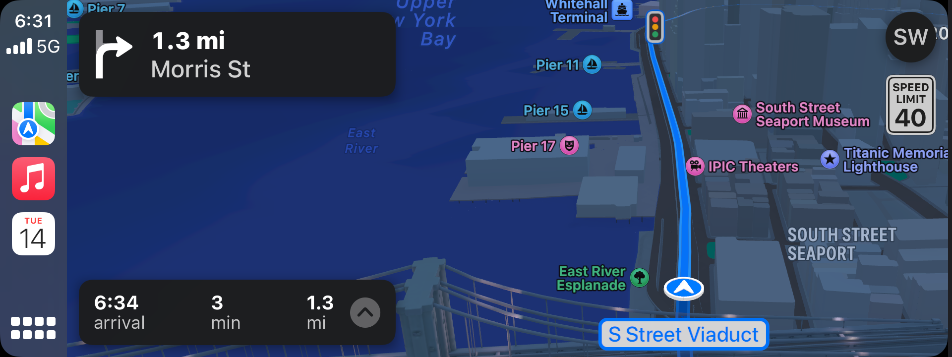 Also, both of the shots have different versions of the label sizes. By default, Maps on CarPlay currently loads with the top version...oversized road label bubbles, with tiny POI icons and labels. The labels on the bottom photo will