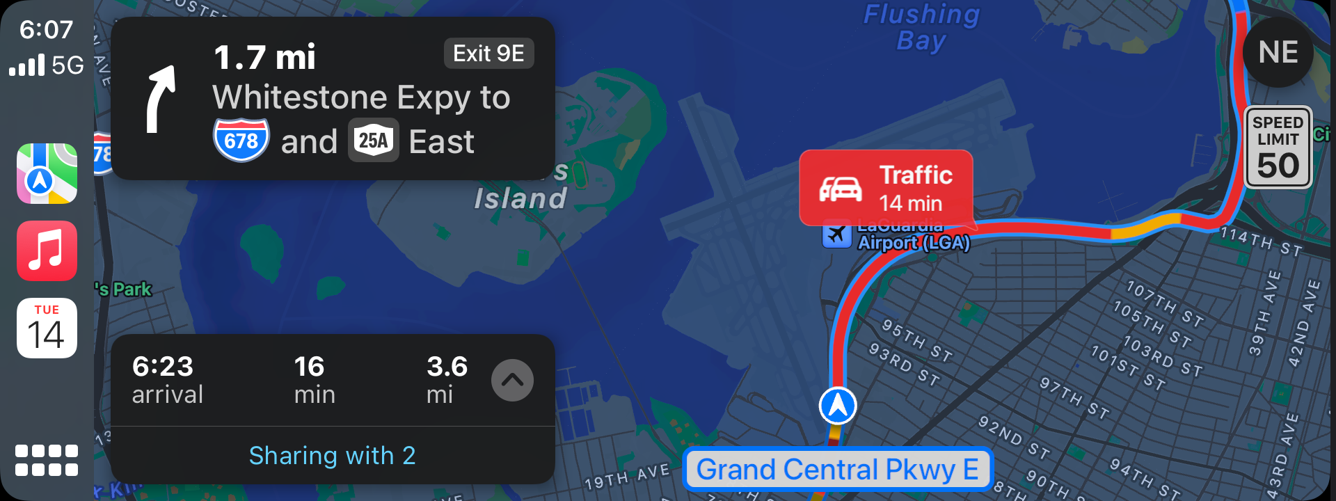 That gives me the bottom photo labels, which has moderately smaller road label bubbles, but much larger POI labels. This version can also be seen regularly on the Maps screen of the CarPlay dashboard.