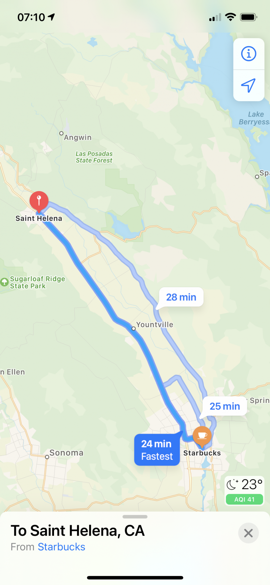 Did a small route from Napa to St. Helens and both Apple Maps and Google Maps took me on a round about path instead of straight up the 29/128.