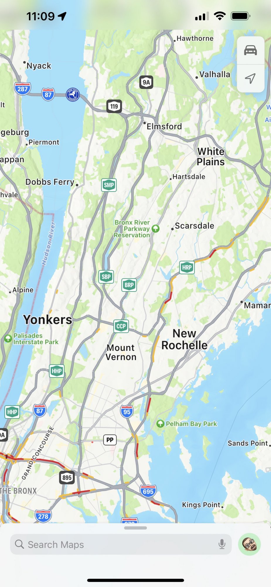 And I don't want to start a whole thing again about Google traffic red versus Apple red, etc., but my opinion, Apple’s yellow here is more representative of what I was experiencing….traffic, yes, but moving along. Red to me really means “stop and go”. Google shows red nearly the entire trip and I don;t think we even stopped due to traffic except when everyone was cutting over to exit certain roads.