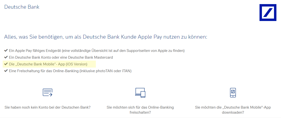 Nice ... Today I experience the login difficulties you mentioned a few days back.comdirect has now put Apple Pay front and center on their website. The Amex DE app is now showing an ad with a link for Apple Pay at the bottom of my transaction overview.