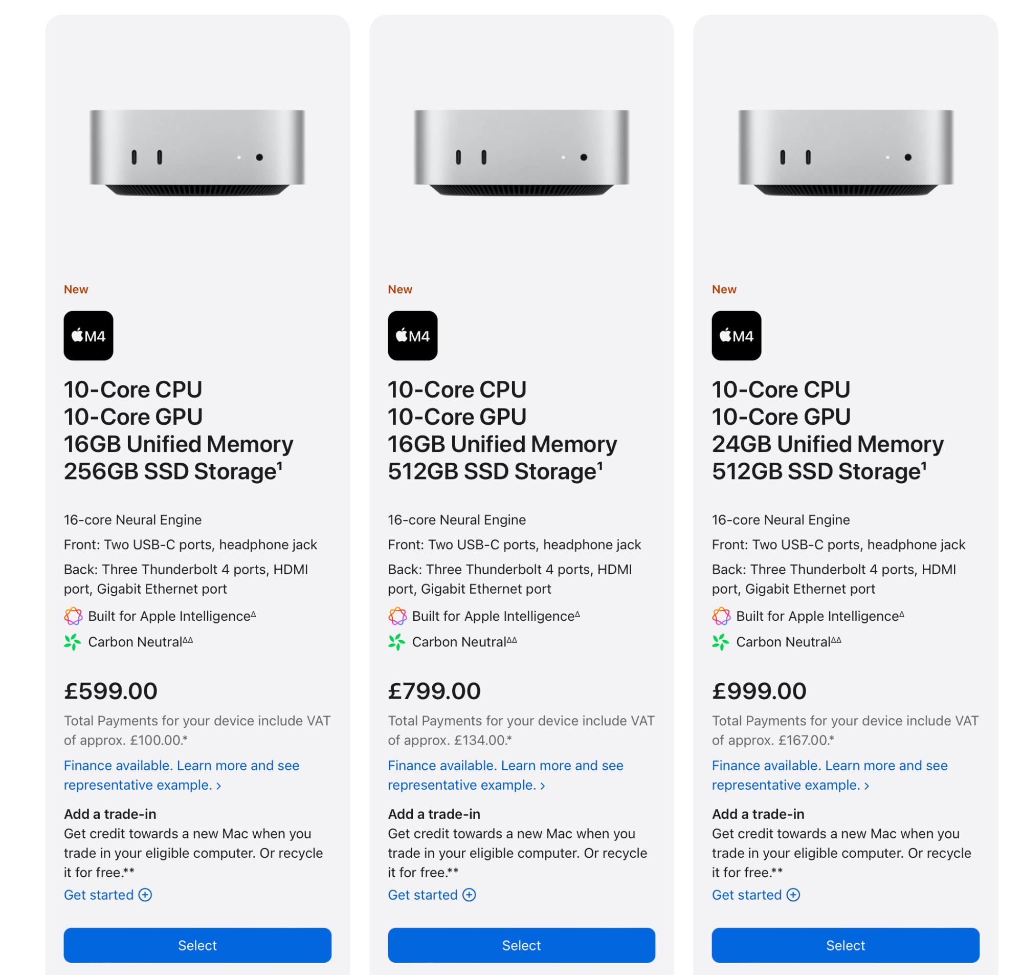 M4 Pro Mini vs. M2 Pro Mini, higher-end Pro chip: Same price.