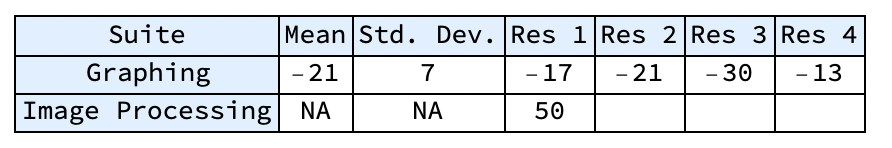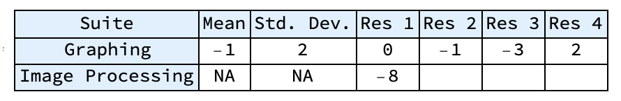 The lower table features a graphing suite, where AS was 21% faster. I also gave it an image-processing task, and it was 46% slower, possibly because it uses numeric computations.