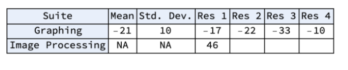 I also provide a mean and standard deviation for the percentages from each suite of tests. I decided to average the percentages rather than the times so that all processes within a test suite are weighted equally, i.e., so that processes with long run times don't dominate.