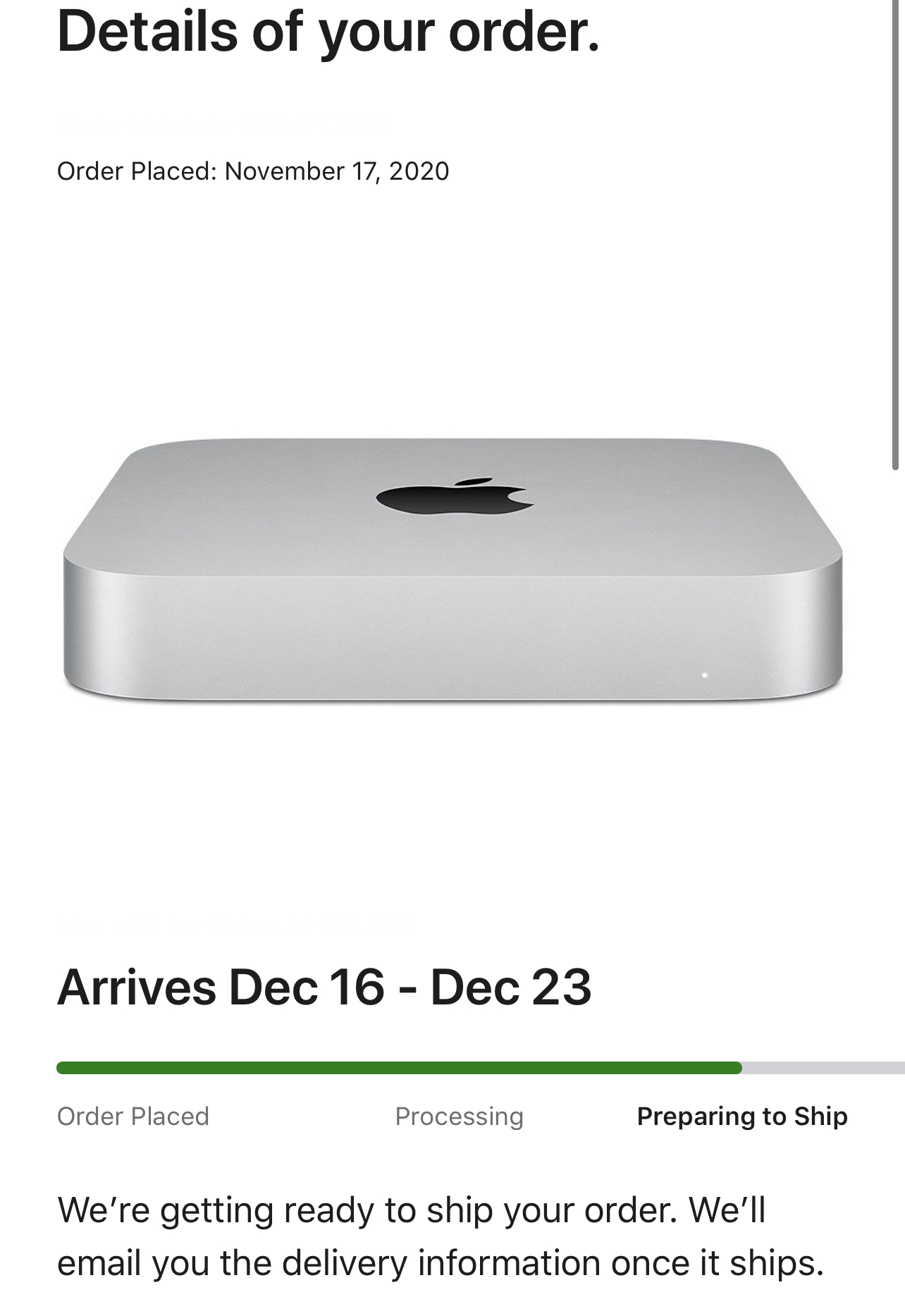 Finally... BTO Mac Mini. Scheduled delivery is Dec 16-23 but looks like it may come early.