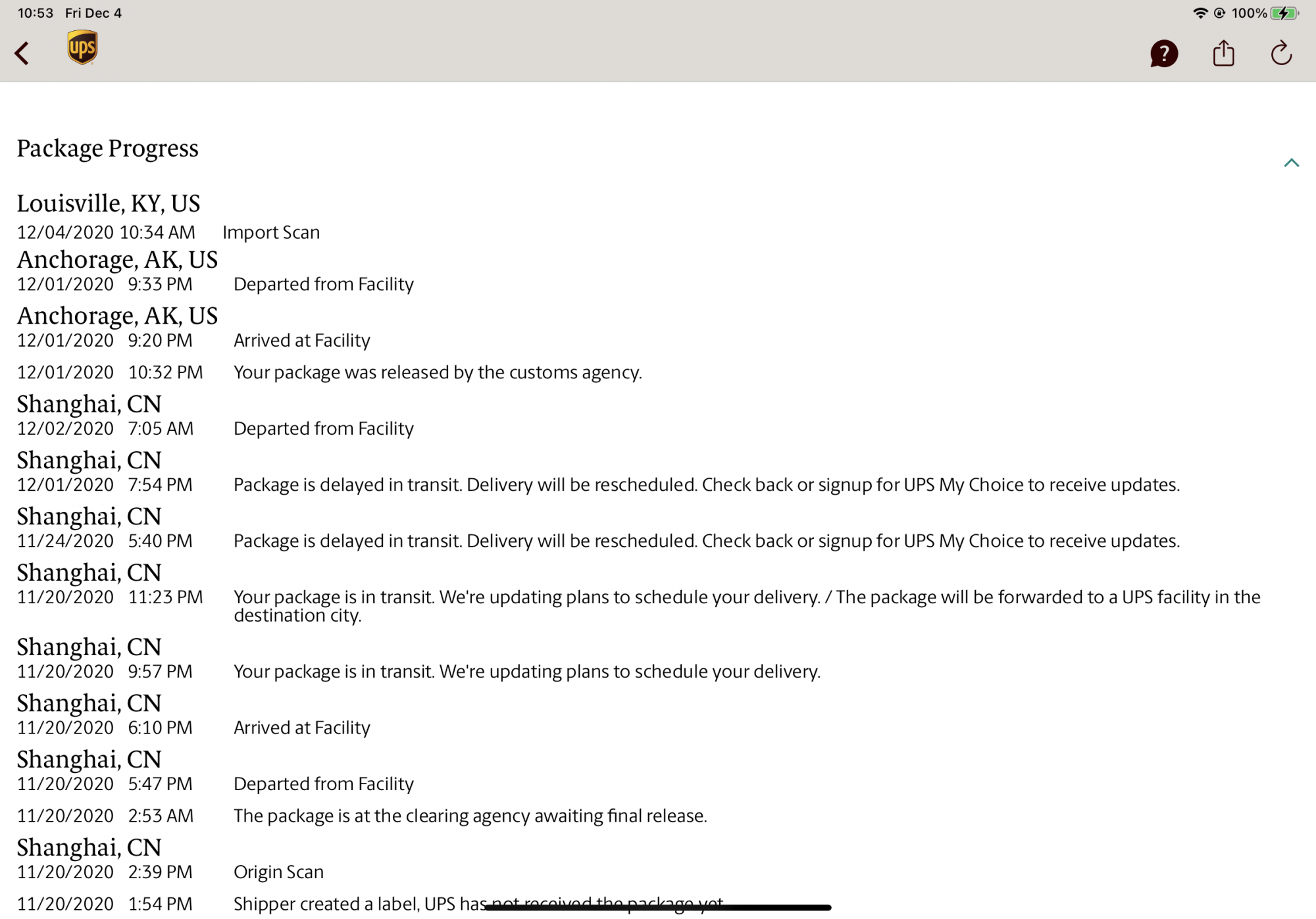 However, the tracking details still show that my package departed ANC on Dec 1 at 9:33PM.