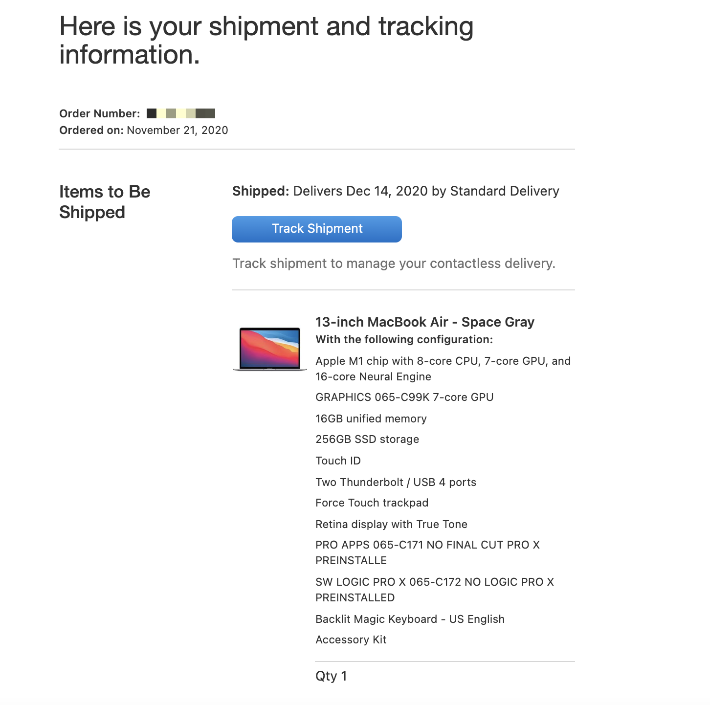 Even better news! The laptop will arrive on 12/10! Man, Apple seriously overdelivering here! Noice!My upgraded M1 MBA finally shipped! 256 GB SSD + 16 GB RAM