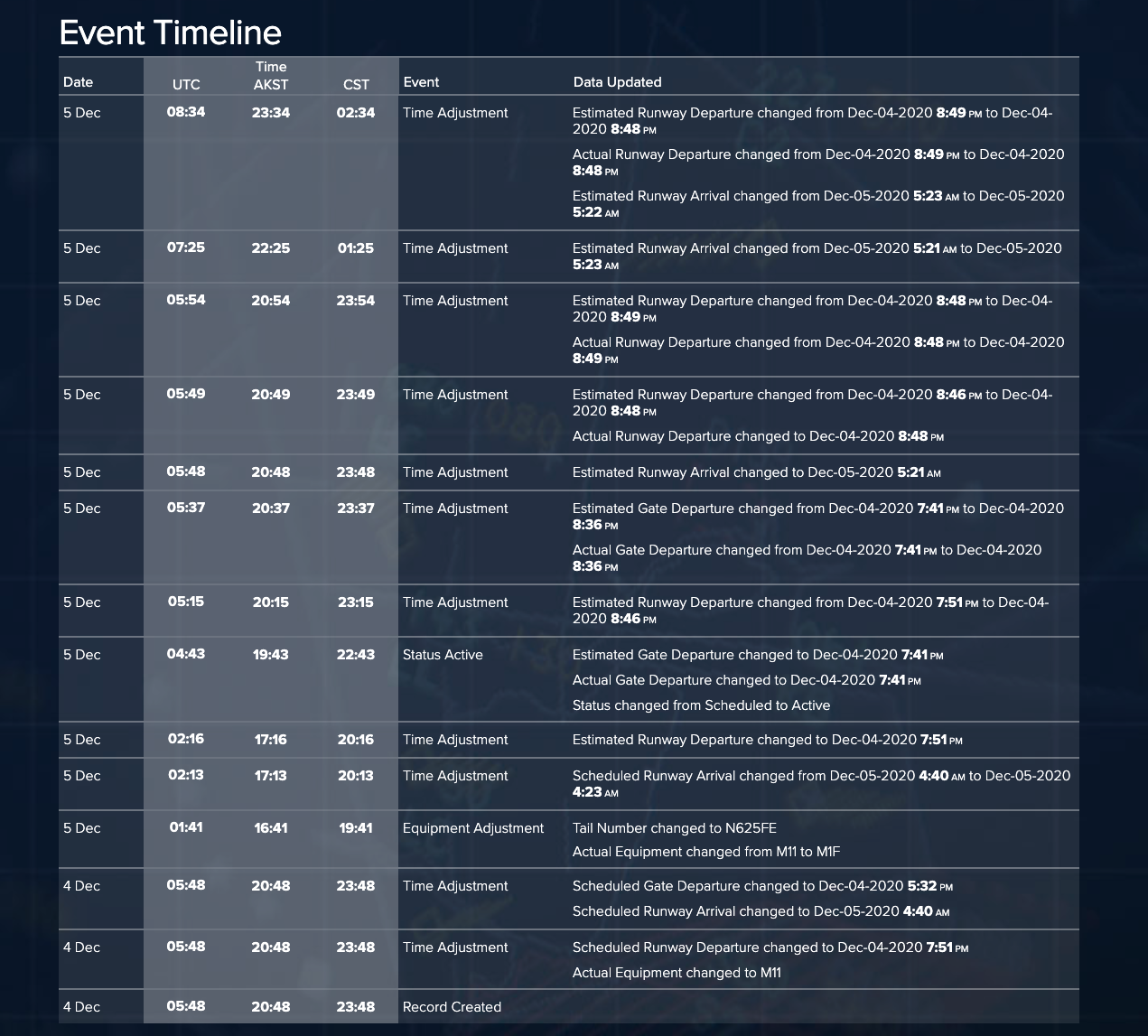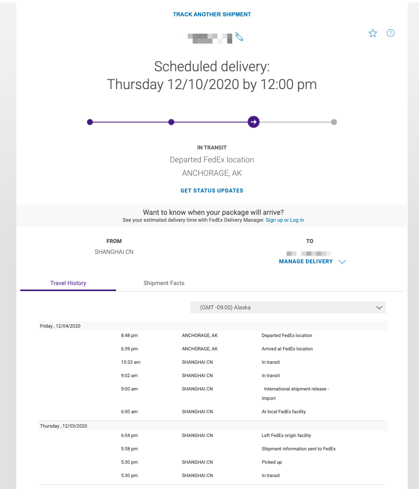 What's with the latest update being "Departed from Anchorage, AK" but the latest Travel History showing "Shanghai, CN" - "In Transit"?