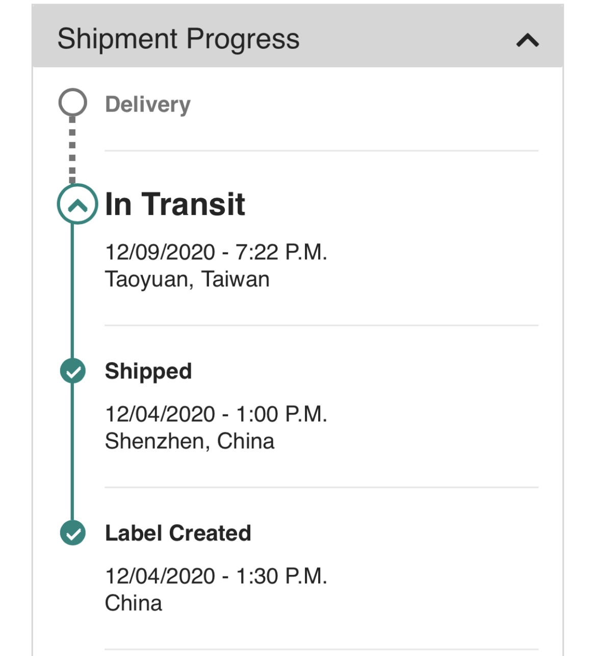 Same thing here. This morning it said Monday, but it just changed to Taiwan and delivery of tomorrow.