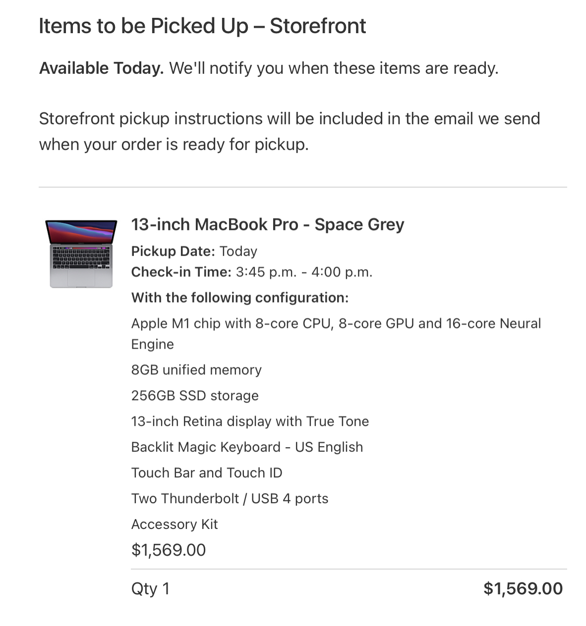 Ordered MBP Intel i7 32 GB / 1 TB, here are the details: