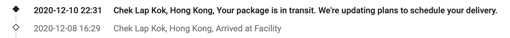 From the UPS tracking I’m not quite sure of where my MBP is or what route it’s taking. Is it on a flight from Alaska or a flight from Korea? Anyone understand this tracking info?