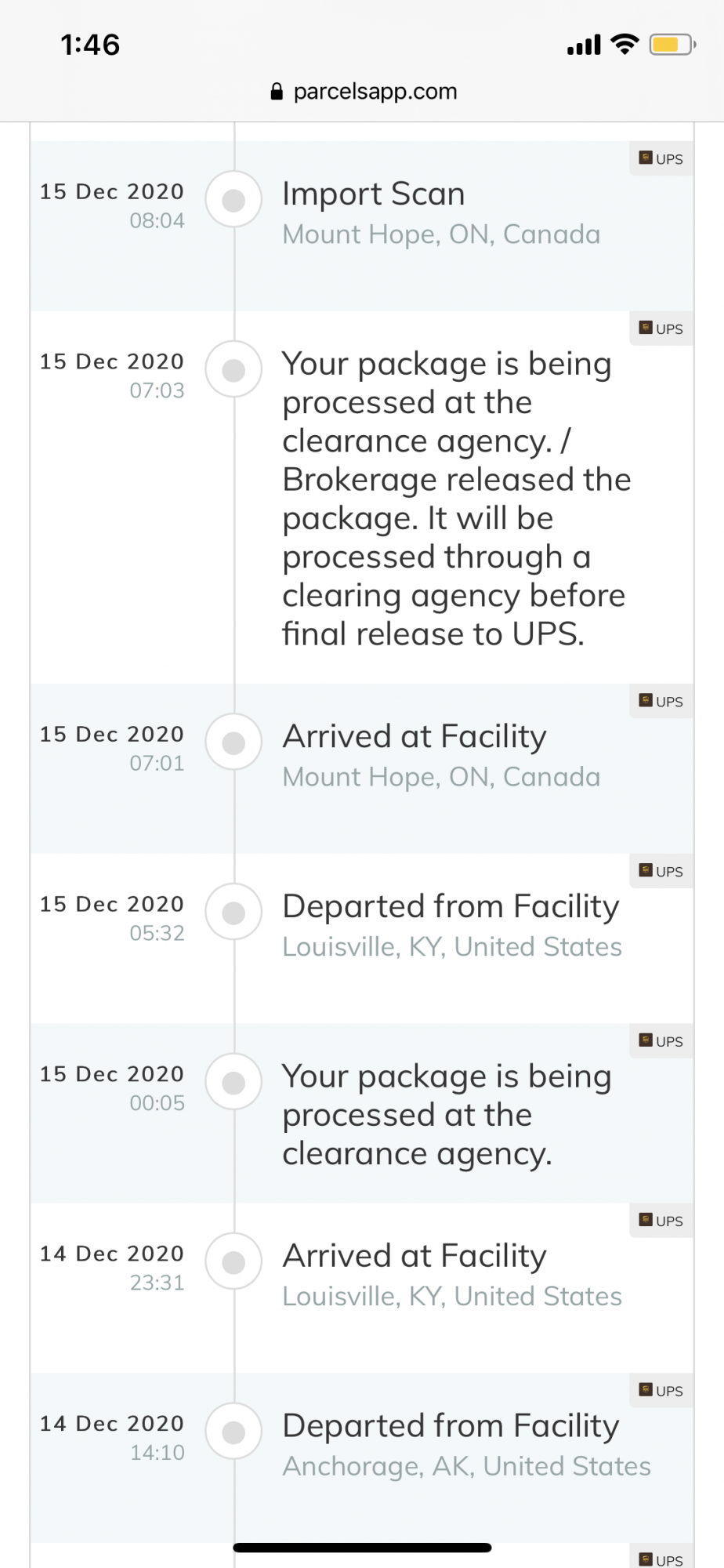 For those tracking: Apple website had the least info on transit, UPS website had only slightly more info than Apple, and