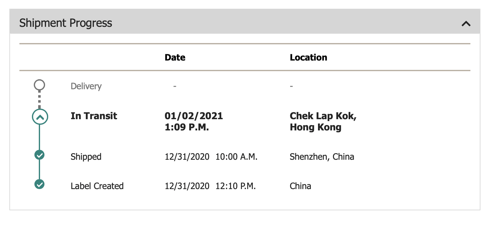 **update, transit delays in shanghai, so status page tells me to expect delays :(