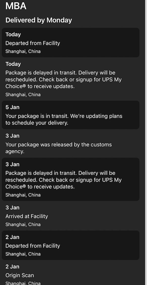 Interesting to see all of these orders coming directly out of China. Mine shipped over the weekend, so here's my updated timeline: