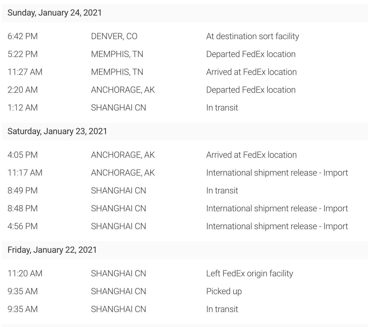 Now in Memphis! I’m in Atlanta, here’s FedEx tracking so far if anyone is interested.