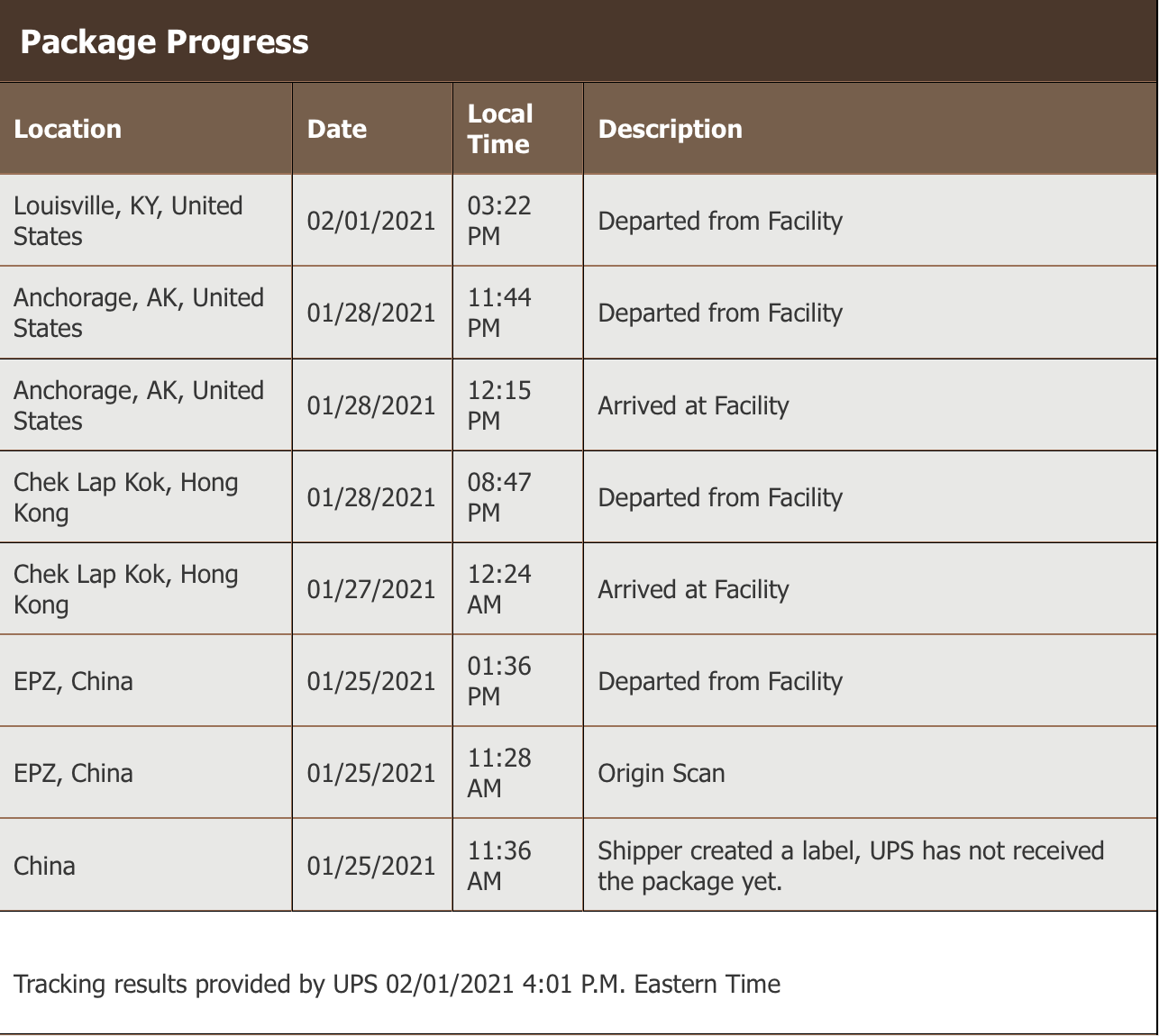 Mine didn't leave Stanford until 5.20pm on Wednesday, went to Sheffield via Tamworth and was then delivered Thursday morning (so it took only 16 hours to leave Stanford and get to me), so there is still hope, albeit providing there aren't any delays in Tamworth. Mine escaped Tamworth very quickly and the UPS network is (in theory) set up to delivery anywhere in the UK next day...