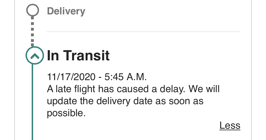 My arrival date changed from 23-25th to just "25th". No idea if that's a sign of further delays or not.