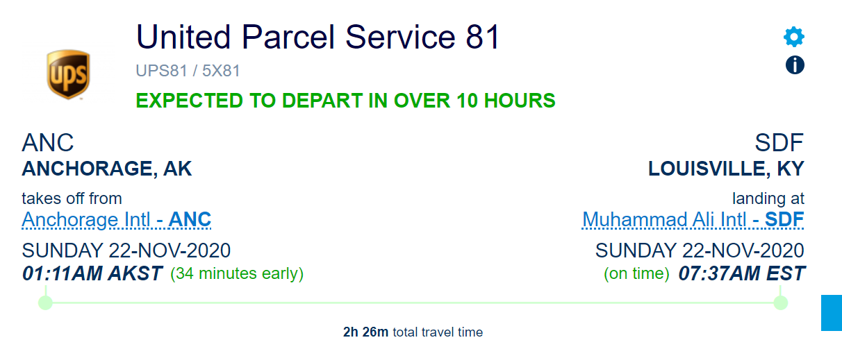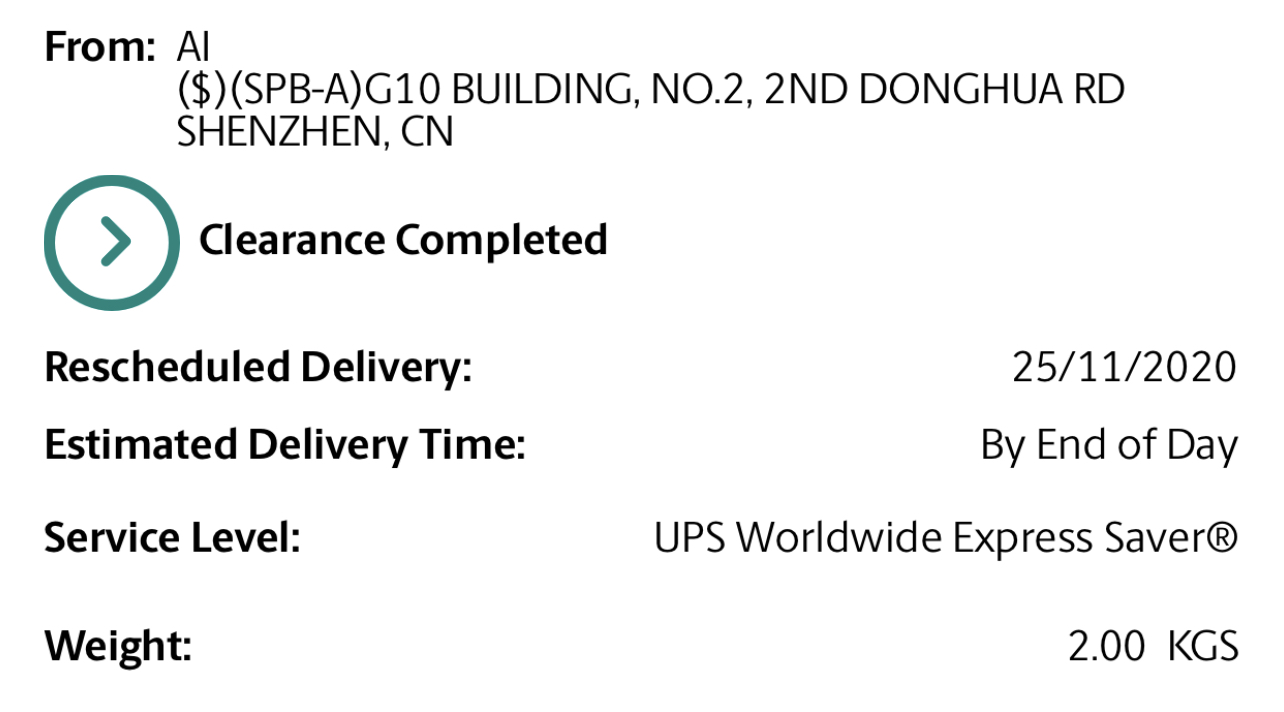 I highly doubt it. Could UPS have lost my package? If it departed Shanghai (which is what "in transit" would indicate), how can it go 48 hours without landing and importing somewhere? It had to go through US customs too, which would definitely include a scan. UPS assures that if your package has been stuck on "in transit" for over a day, you will still get it on your "scheduled delivery date," but currently, my UPS shipment shows no scheduled delivery date, it just says "check back later." If I don't get it today, that means I'll probably get it Dec 1. If they've had it for two days, why would it not leave Shanghai yet? There's definitely enough demand from Shanghai to the US to fill up a plane.