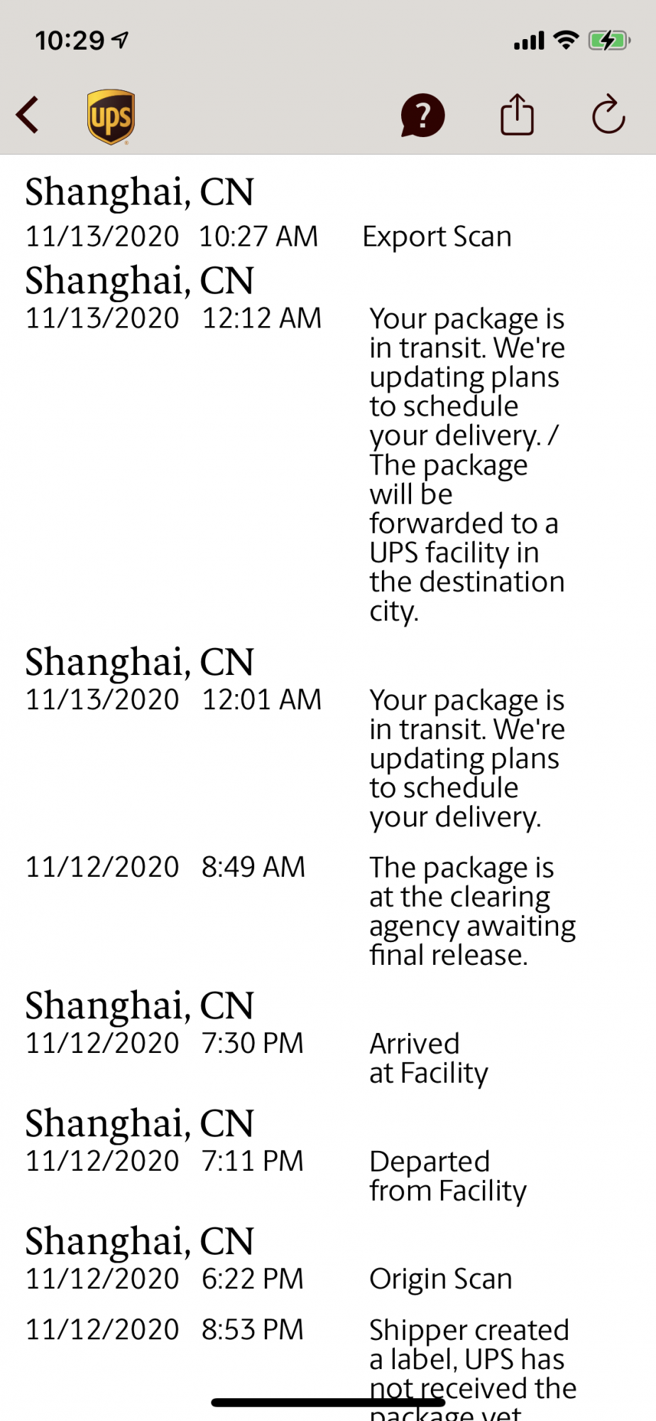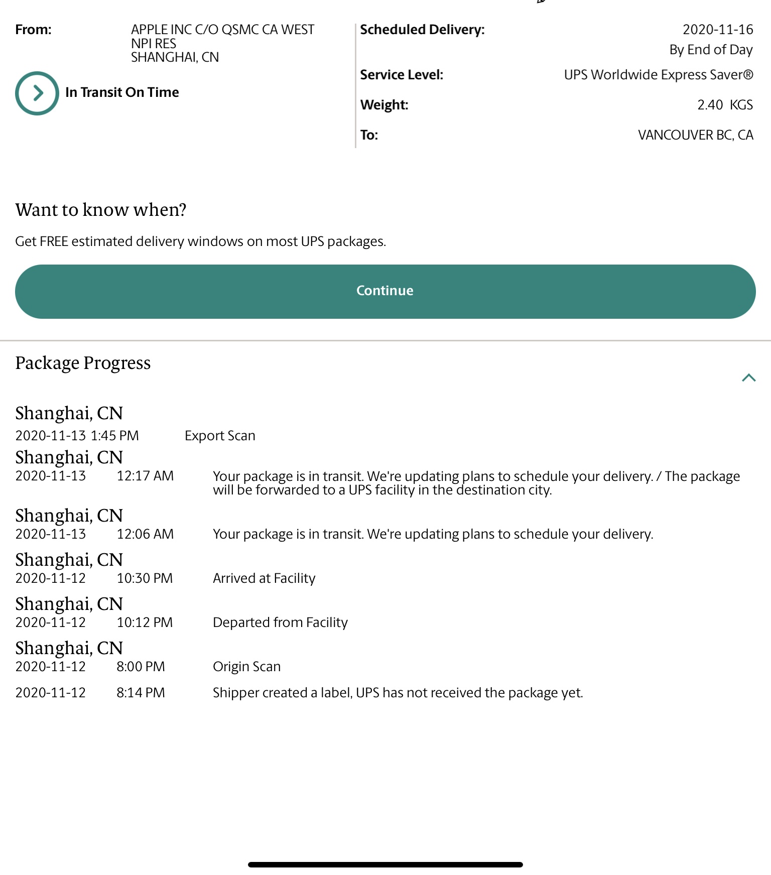 I saw an export scan from Shanghai too. Good chance we will receive them Monday. 🙂The Apple Store says November 18th but...