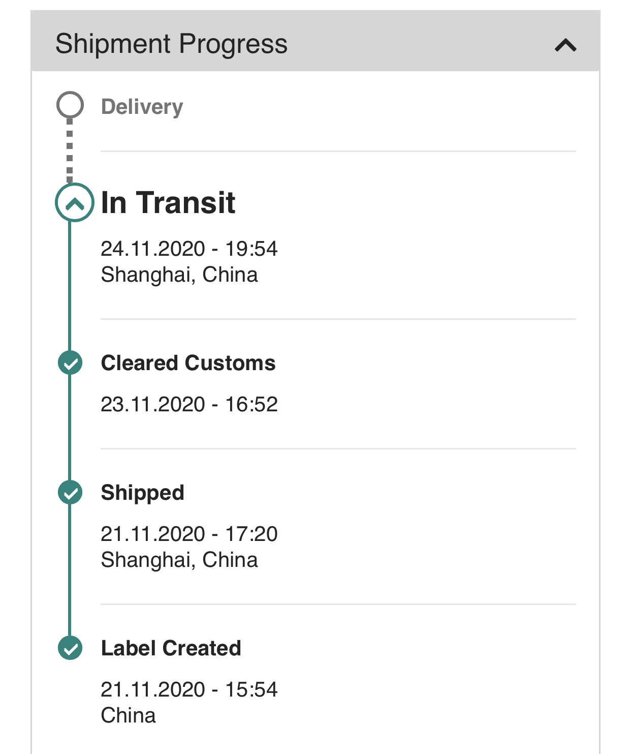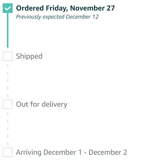 The same just happened to me. My arrival state moved from Dec 1 to Jan 4....basically just the same if I had just ordered the machine today. I'm not happy.Got Apple on the phone this afternoon, explained the situation (Shanghai, UPS) and was told it was a widespread issue and an investigation had already been opened. About an hour later I got an email stating that my shipment “was not delivered by our carrier.” They say a replacement will be sent as soon as possible and I’ll be notified when it ships. So, no clue on when (Apple Store app still says Dec 22), but they said it typically happens within 24 hours. The wait continues.