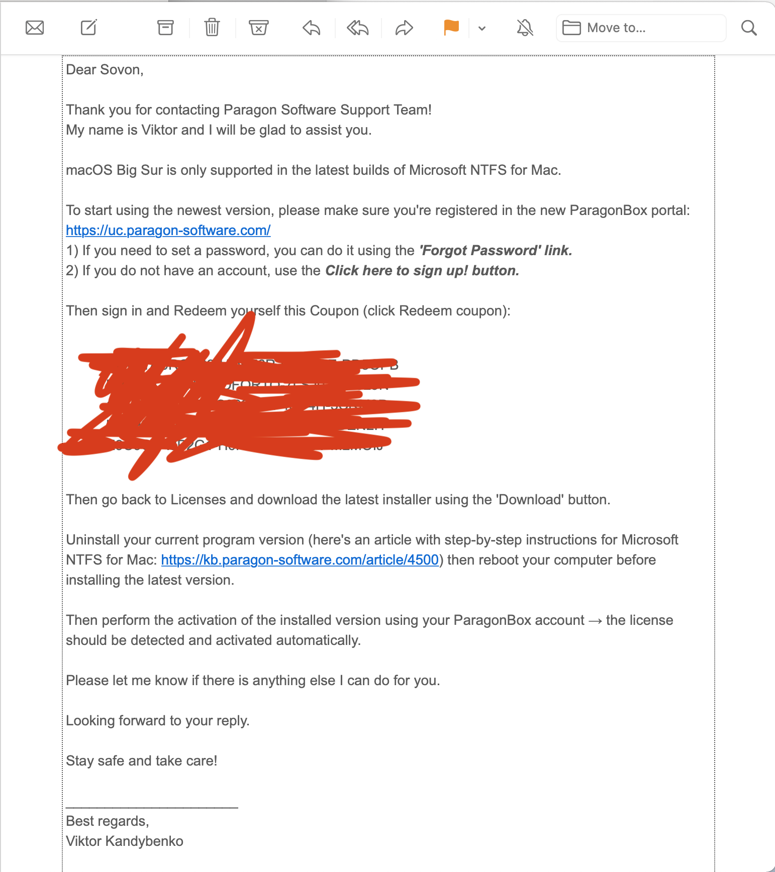 I purchased the entire Paragon suite in 2019. Today I installed the trial NTFS for mac app but I am not able to activate (sign in).