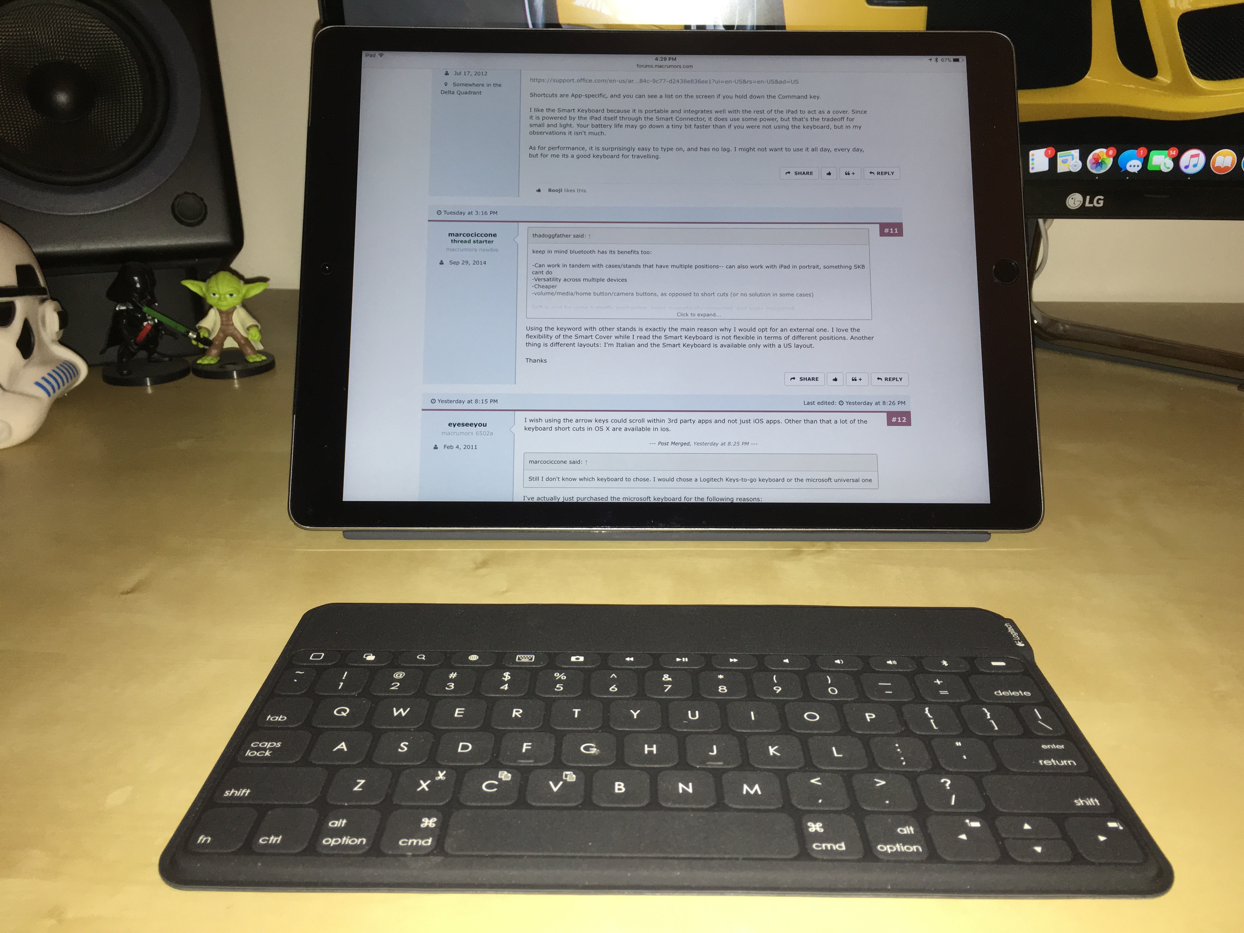 The thing is that I've tried the apple smart keyboard in store and I find it awesome for typing. I like how it feels and I can type fast.