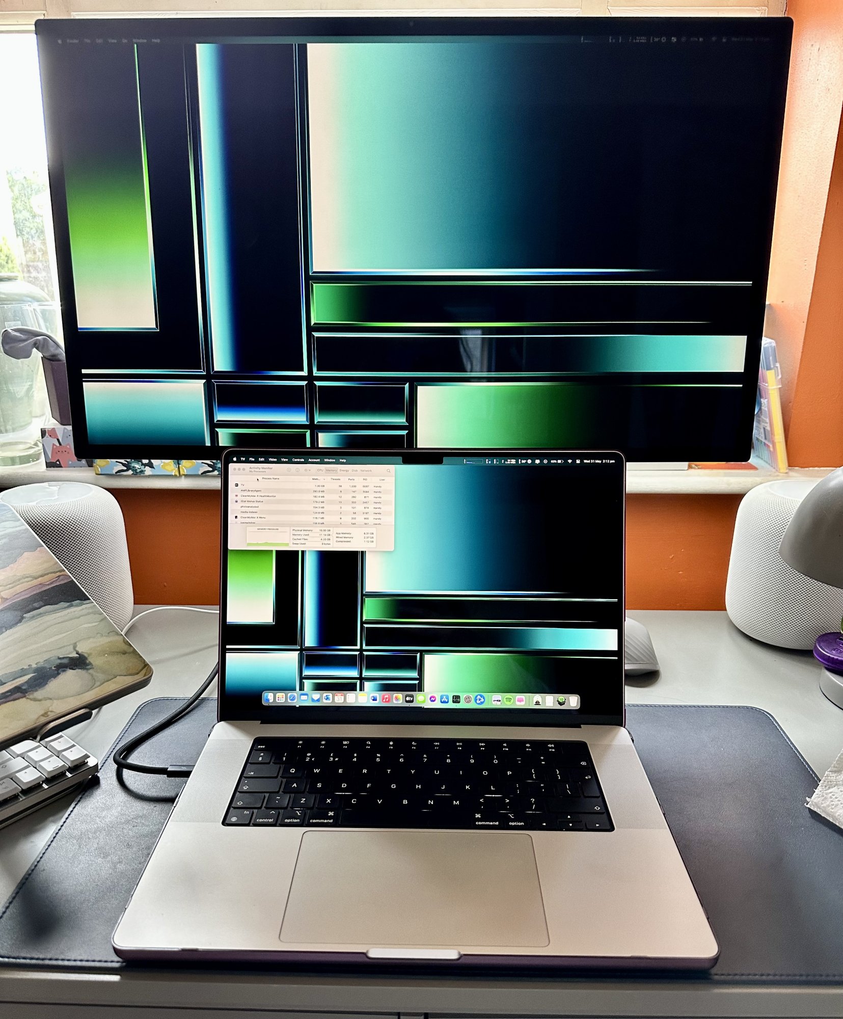 Nice. Is there a reason why you plugged in the MagSafe charge cable along with the ASD Thunderbolt cable?Oh btw, happy to report that Studio Display itself is top notch: no dreaded electrical buzz nor fan noise [🤞], image quality as stellar as with my previous iMac 27" 5K and sound quality from the speakers might just be even better (i.e. really good!). 1485€ as new on Amazon.de with the VESA mount, so pretty competitively priced compared e.g. to the new Samsung 5K 27" display.