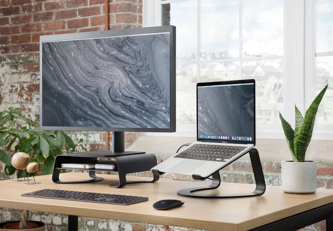 I like that laptop stand.If you want a bit of height without spending the money on the tilt and height stand, Twelve South have the riser which if you were using a Mac Mini paired with the ASD, fits neatly in the shelf.