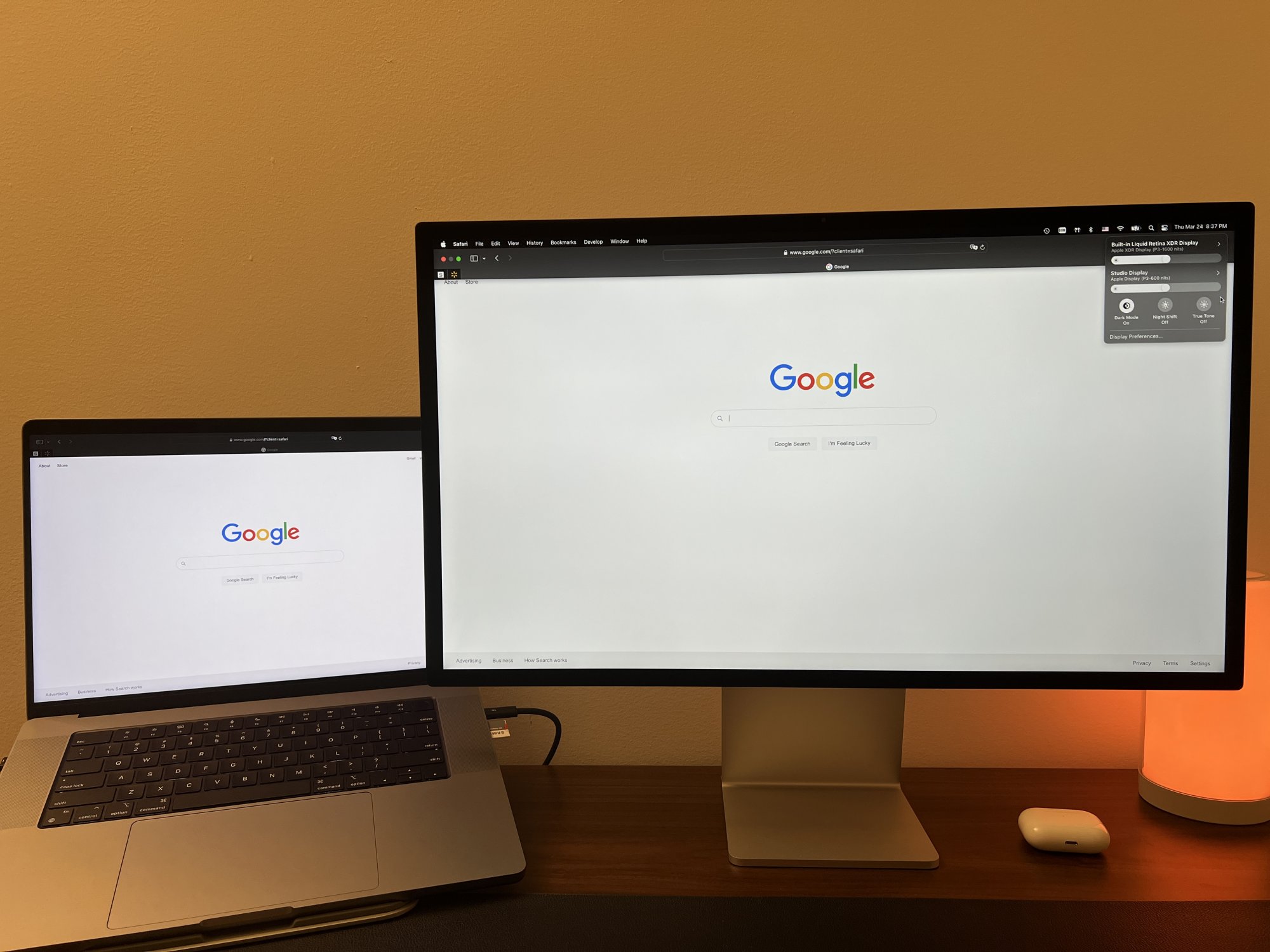 One's a 1000-nit panel, the other 600. I'm not sure setting the slider to the same point gives equal light output, does it? The MacBook looks brighter to me.It's not true tone, it's disabled and both are set to the same brightness, see the upper right corner of the pic. Maybe if there was any easy way to perhaps adjust the white point but I don't see how.