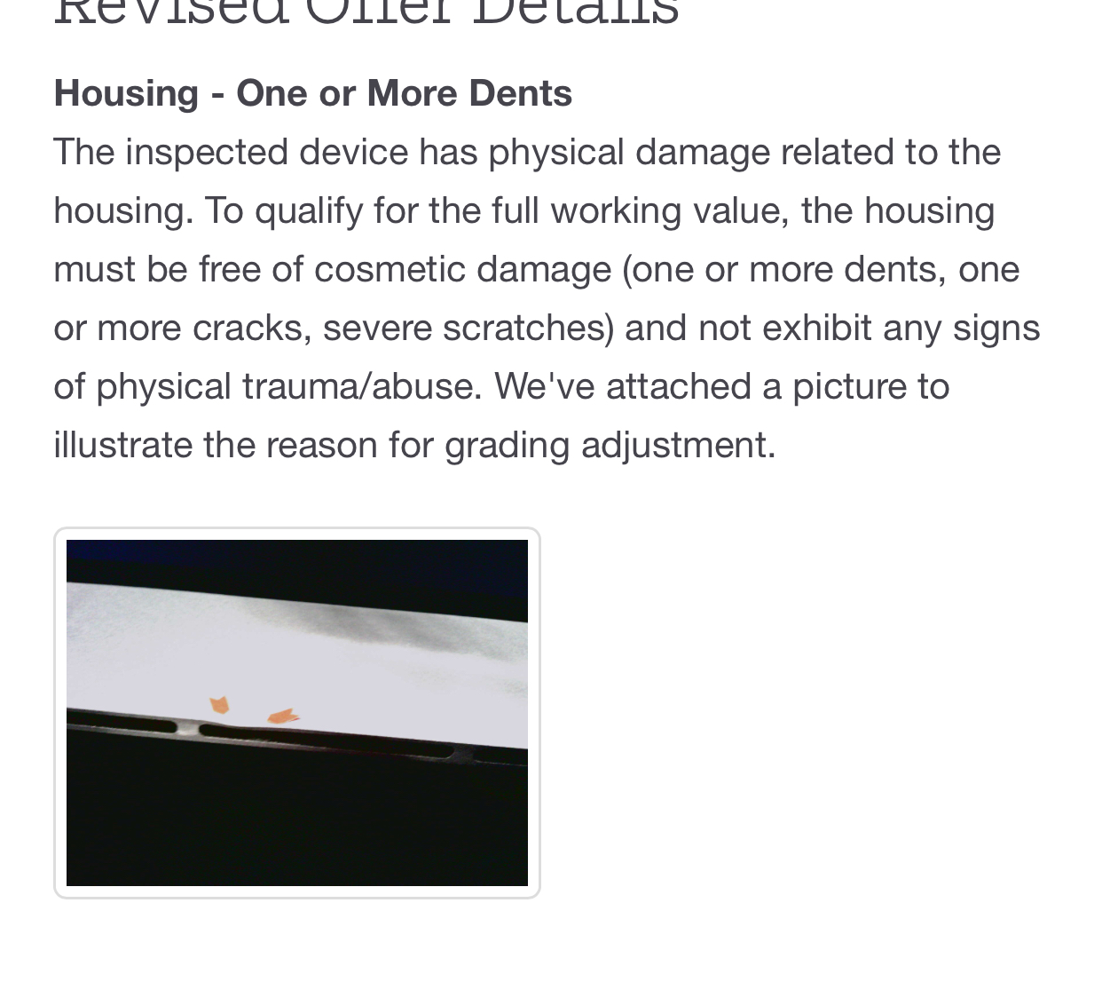 I could totally understand if the screen was cracked or the whole unit was damaged in a severe way that drastic of a reduction but as you’ll see in the video this apparent speaker dent made them reduce the offer to a measly $120 in store credit
