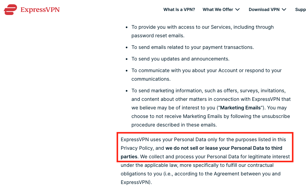 Nope. This used to be true, but ExpressVPN was bought out by a data mining company. Snowden said to avoid them after this took place. They are complete and utter garbage and I can't recommend them anymore. You should switch to NordVPN or MullvadVPN. NordVPN has been audited for years to show they don't have any user data retention. MullvadVPN was recently raided and had zero user data to cough up. The more secure of these two is Mullvad, but the speeds are slower.Name one business that DOESN'T sell your information for their benefit or profit? Advertising, as much as we hate it, is part of any business model. Dontt want to be targeted with ads? Dontt use the internet. By the way, how did you get away from actual paper junk mail in your mailbox? The companies that send you unsolicited ads in the mail have your information too.