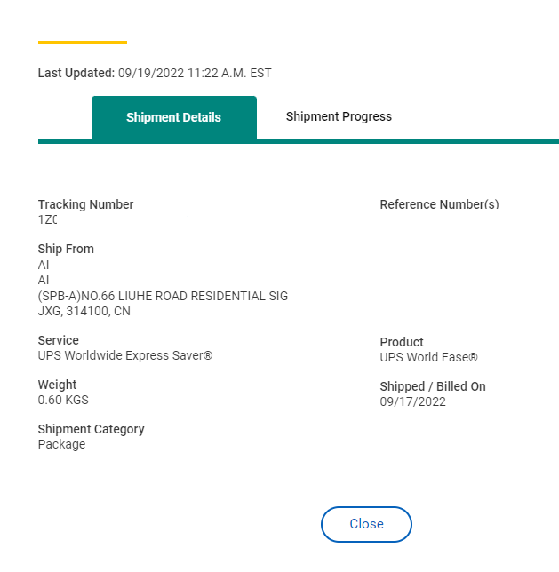 2) View Details - Full tracking is there and some, but not all of the Reference numbers are there. On this screen, neither my phone # nor Order Number with Apple (Minus 2-Digits) are present yet. Click on the Tracking number to open up specific Package Tracking Details.
