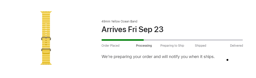 I ordered a S8 Aluminum GPS + Cellular. My original delivery window was 9/30 - 10/3, which has since dropped to 9/23-9/30. Anyone else with that delivery window seen any movement? Apple still says "order in progress" and there's nothing in UPS My Choice in tracking by reference... I was really hoping to get my watch this week 😣