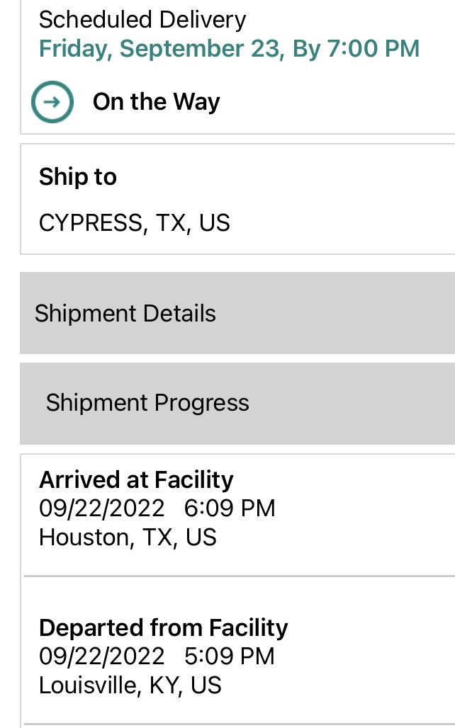 Any movement since it landed? My UPS is still showing departed from Louisville.Flight from KY has landed in Chicago!!!! So close and yet so far away!!!!!!! I'm not going to be able to sleep tonight.