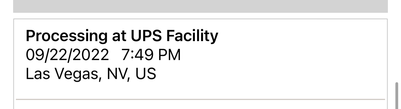 @thera As suggested it just arrived to the hub. Last stop. 15 minute drive.No problem! I just got a notification it’s on its way to the destination hub. This is the last stop. The UPS trailer is probably transporting it. If you want to pick it up tomorrow. I would request it now so when it arrives they will put it to the side for you instead of loading it to the UPS truck.