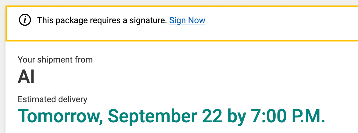 Yea, a bit surprising…I will keep an eye on it as we had a couple packages growing feet…Hey, yours needs no signature ?