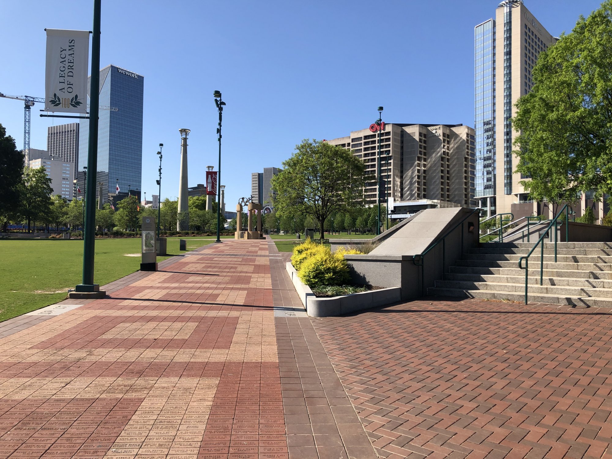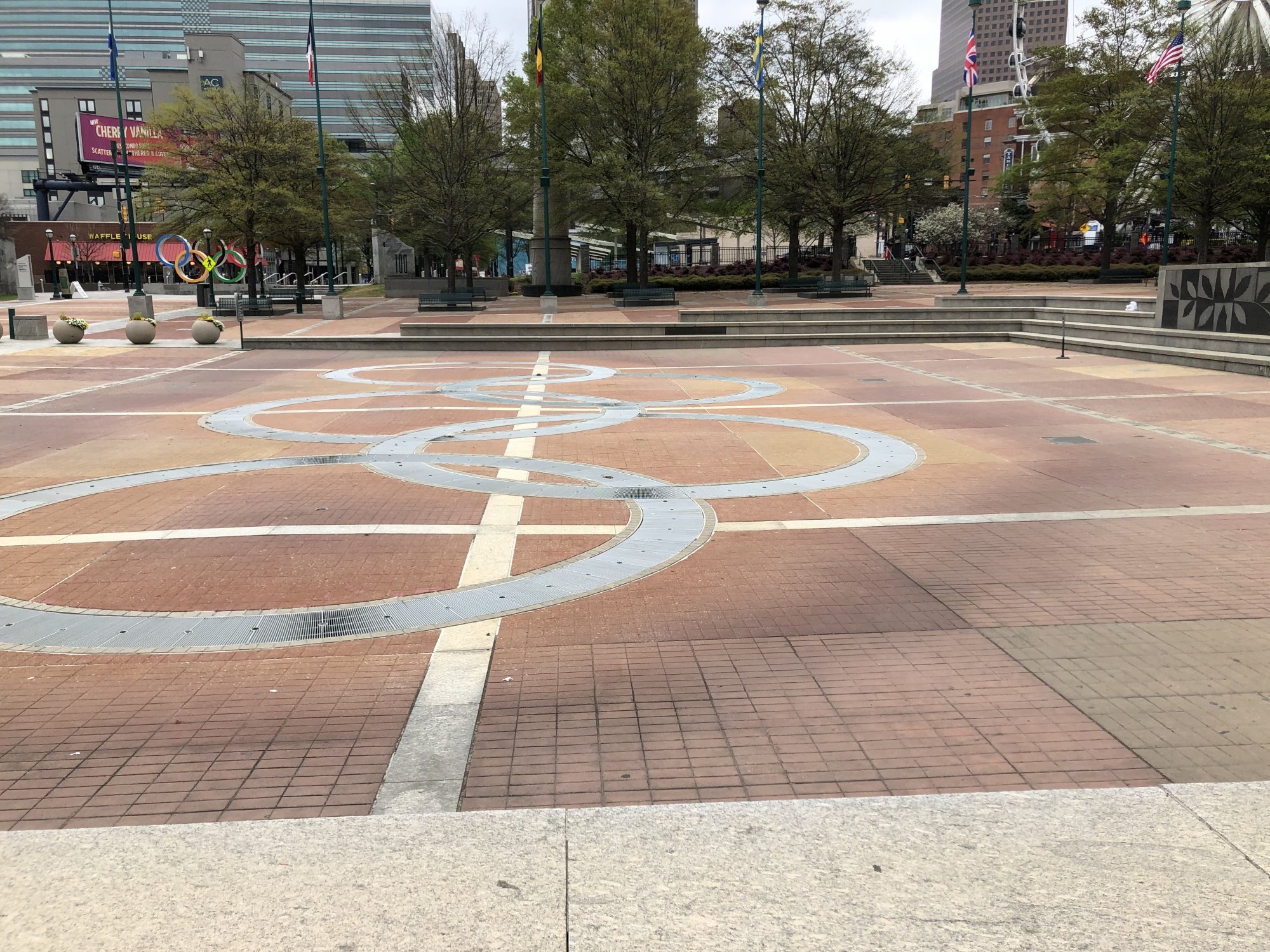 Here is a pic (not mine) of the way Centennial Olympic Park Fountain SHOULD have looked and the way it DID look (my pic) Saturday.Strange photos without any people - we certainly are living at a strange time in our lives. Everyone KEEP SAFE.