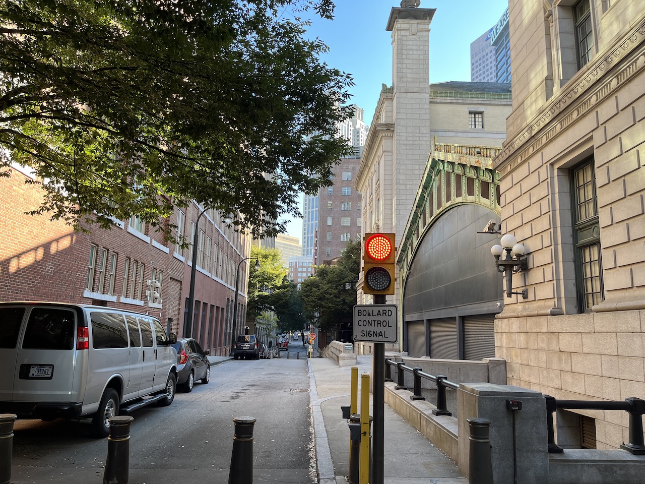 Pedestrian Hawk in SoNo. We now have a few of them in ATL already (invented about 20 years ago) and hope to see them proliferate and become ubiquitous. Probably the greatest advance for pedestrian safety yet.