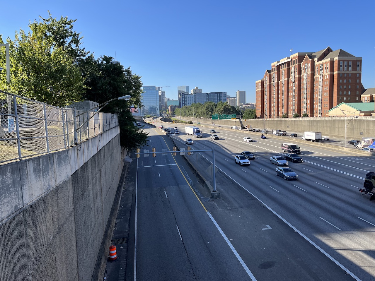 Crossing the Connector on North St. 1996 Olympic Village now Georgia Tech dorms on right.