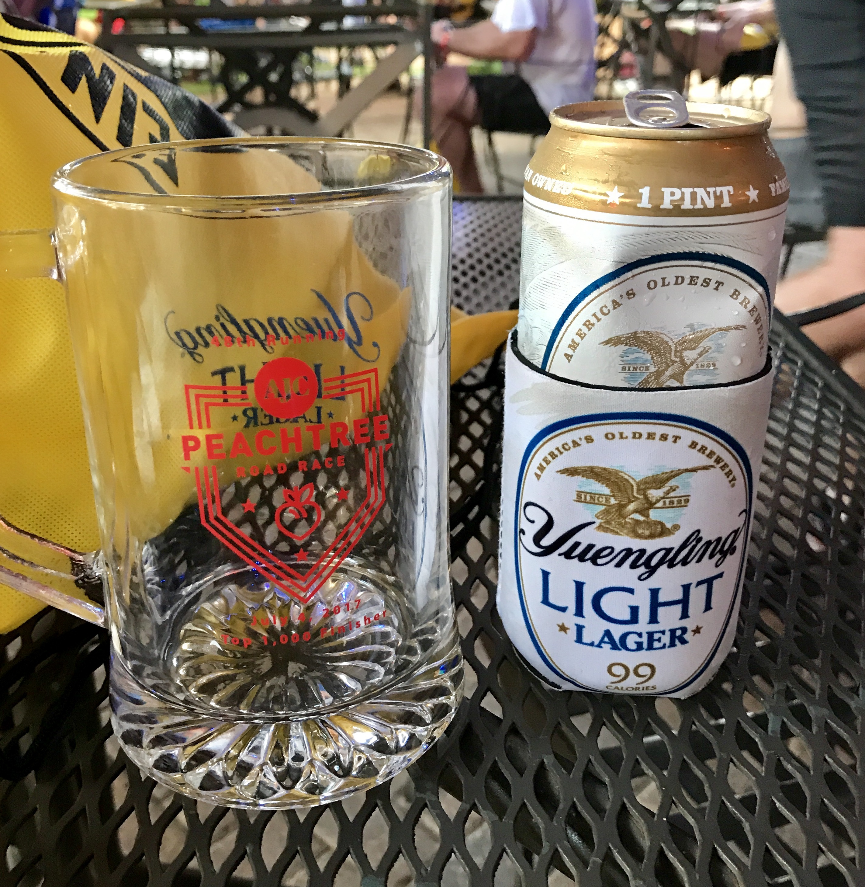 Inside the Atlanta Track Club "Post Race Party" area with free beer (not for me), extra fo