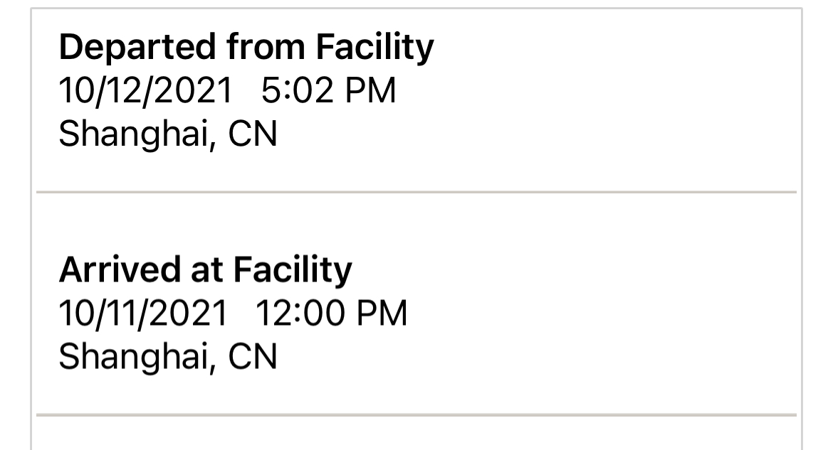 Our watches are on UPS 109. Just arrived in Tokyo and will go to Anchorage and on to Louisville.I got a different departure from Shanghai. It’s headed… somewhere.