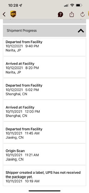 There seems to be a bunch of us here on the same timeline/flight, including me! Keeping an eye on UPS 109 now.Yay! Departure scan from Japan already? Probably one of the first Apple Watches to made it to the states on this thread. Happy and safe travels to you as well.