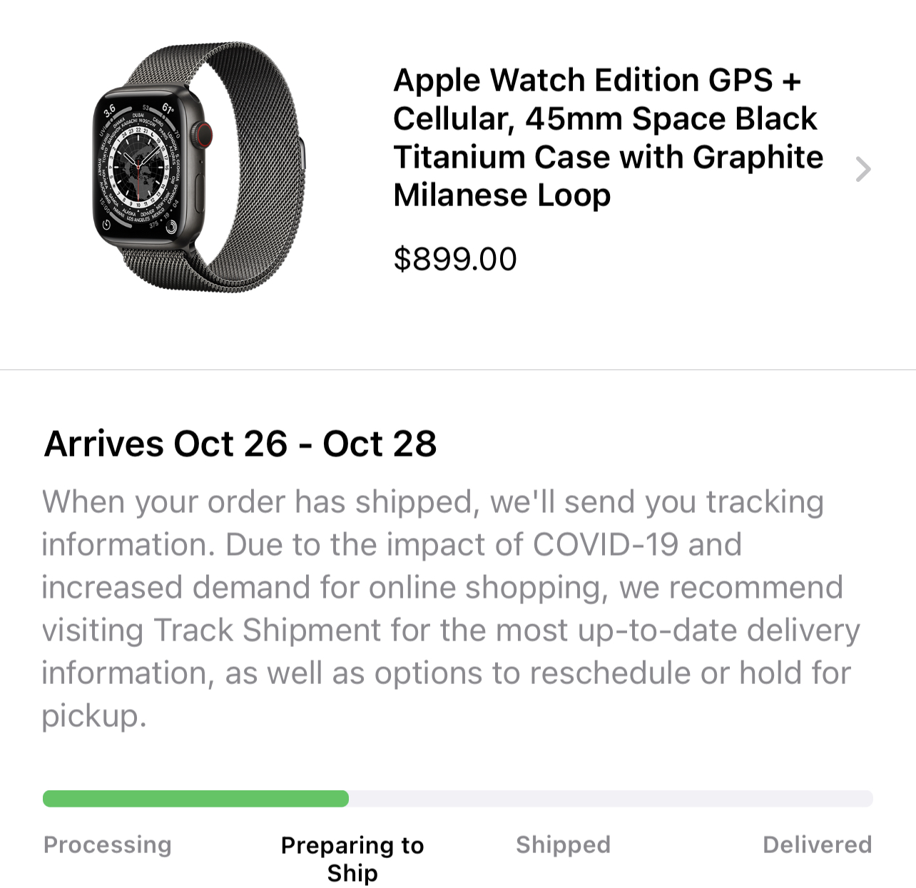 It’s preparing to ship. So UPS scan should be generating over the weekend. I’m hoping to receive it by mid of next week. Fingers are crossed. Like you said earlier it would be nice to receive the ⌚️ with 💻Over the weekend? 🤔 says 26th-28th Oct, what am I missing? 🤔😂