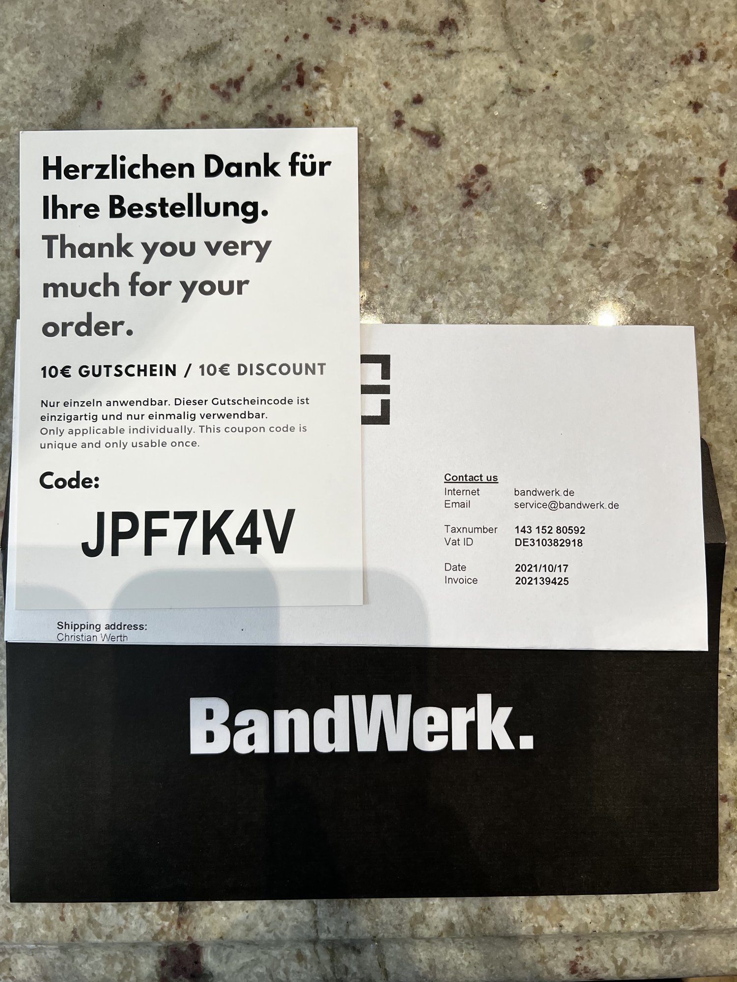 Great bands! Glad to see shipping was fast from BandWerk, too.My bands have arrived. I have to say, I am blown away by the quality/craftsmanship from Bandwerks! One of the best bands Ive ever purchased. I ordered on Sunday night got here today from Germany.