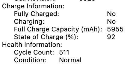 Click on the apple logo top left, about this Mac, system report, power, what does these 2 say. 👇