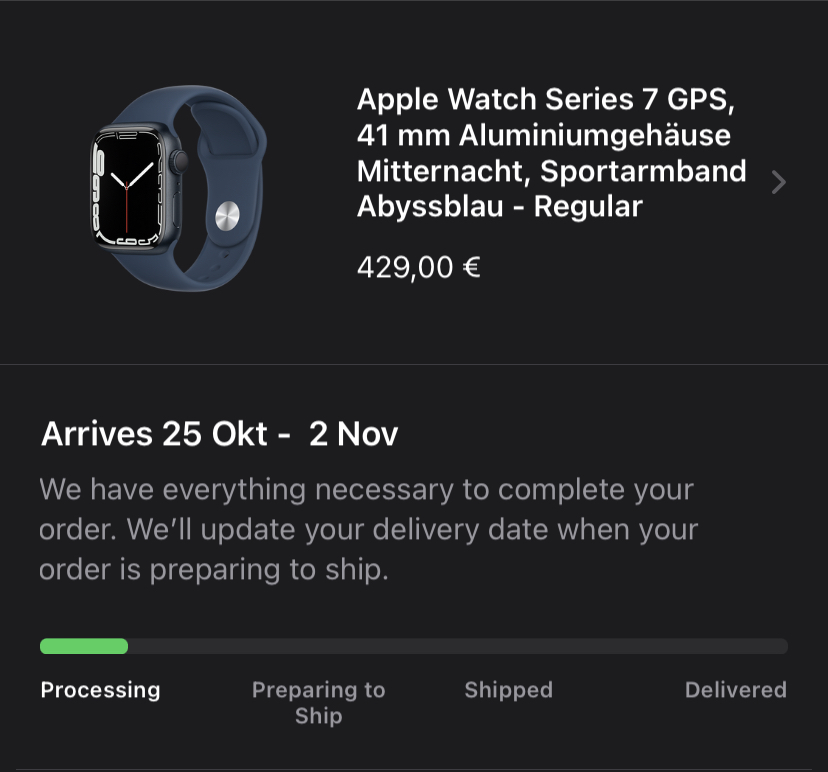 I was charged last night. Midnight/Midnight Sport. Now preparing to ship. Nov 1 - Nov 8 was the date I was given when I ordered on opening day.Still nothing 🤔