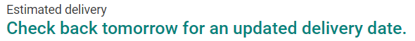Same message since yesterday afternoon. Was originally scheduled for 10/29 but I got an email from UPS about an hour ago that says 11/01, still no tracking updates though.Same message for me now! "Check back tomorrow for an updated delivery date" - was scheduled for 11/01.