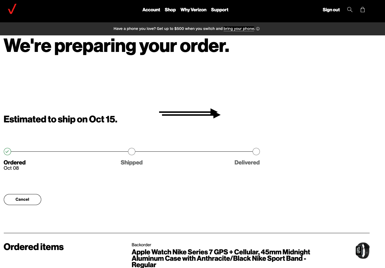 Went Starlight with Charcoal Braided Loop - got October 27th delivery. Then immediately had buyers remorse and saw the Dark Cherry Braided Loop - saw 15th October store pickup. Went to checkout, clicked on confirm.. button wouldn't respond and now not available.